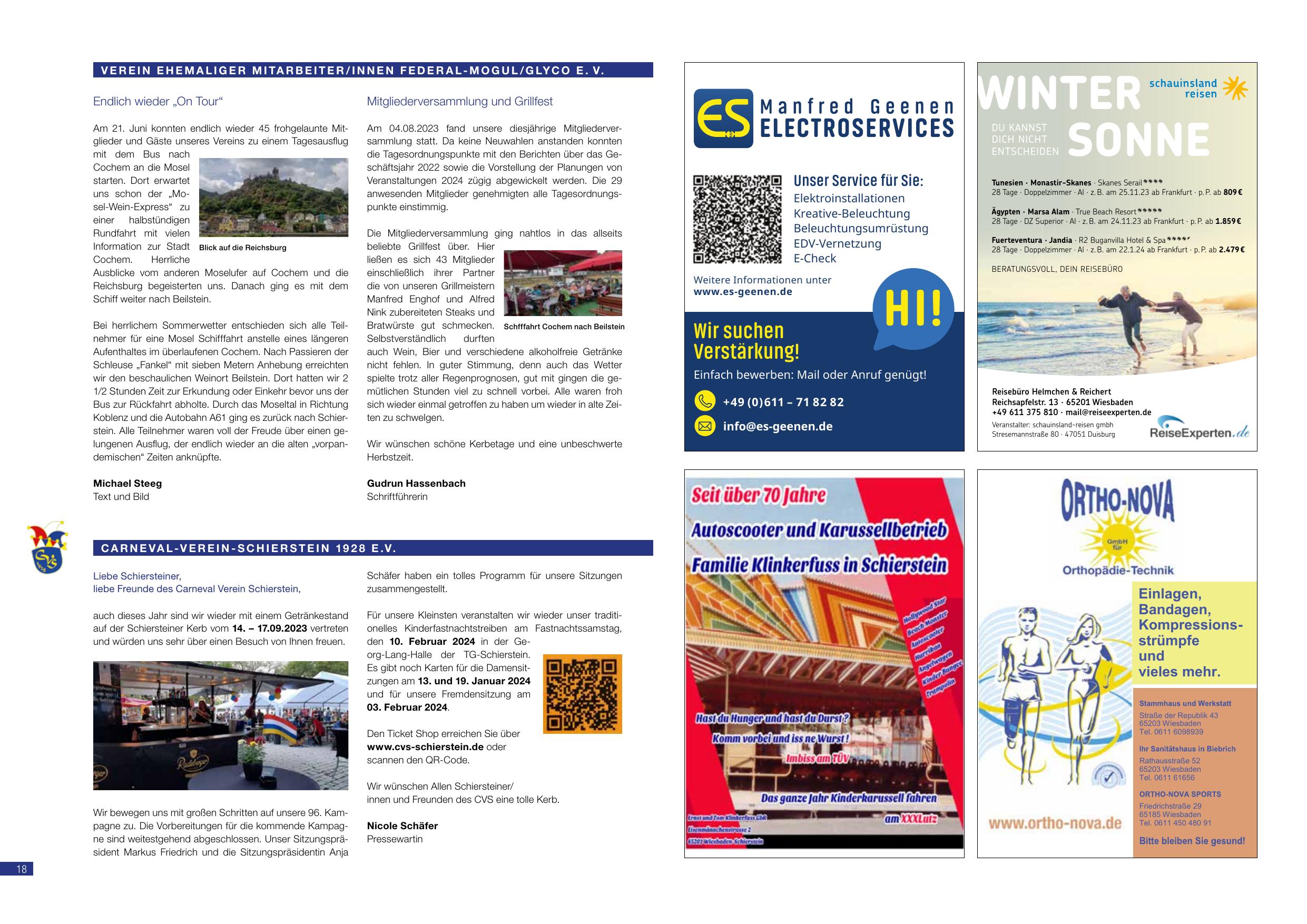 Liebe Freundinnen und Freunde des CVS! Auch dieses Jahr sind wir wieder mit einem Galaktanjekt auf dem Schiersteiner Kerb vom 14.–17.09.2023 vertreten und laden uns über einen Besuch an unserm Stand ein. Für unsere Kleinen veranstalten wir am Fastnachtssamstag, den 10. Februar 2024, in der Garage Lang-Halle des TG-Schiersteins eine Kinderfastnacht. Die Tickets erhalten Sie über www.cvs-schierstein.de oder den QR-Code. Wir wünschen Allen Schiersteiner und Freunden des CVS eine tolle Kerb! Bericht von Nicole Oths.