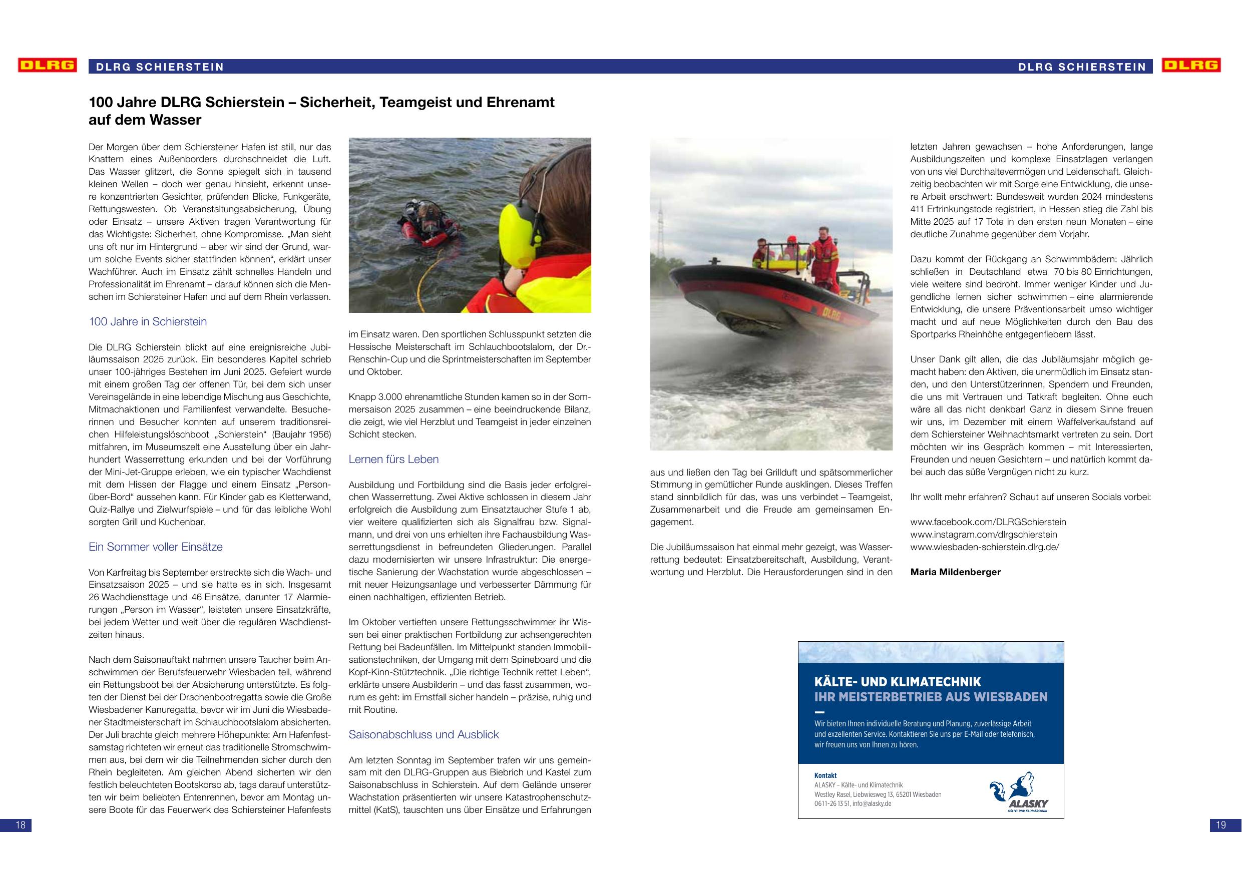 Die DLRG Schierstein blickt auf eine einzigartige Jubiläumssaison 2025 zurück. Dazu haben uns 100 jährige Mitglieder der DLRG Schierstein vereint. Das Jubiläum für unser 100-jähriges Bestehen der DLRG feierte sich im Sommer 2025 mit einer Erinnerungs- und Gedenkveranstaltung. Mit dem großen Ehrenmahl – ein echtes Jubiläum für das Schiersteiner Havenbecken und natürlich auch den Wasser-Rettungsdienst, in den Jubiläumsjahres. Das Jubiläum wurde nicht allein in diesem Jahr mit einer besonderen Feier und einer Bootstaufe auf dem Rhein verbunden.
