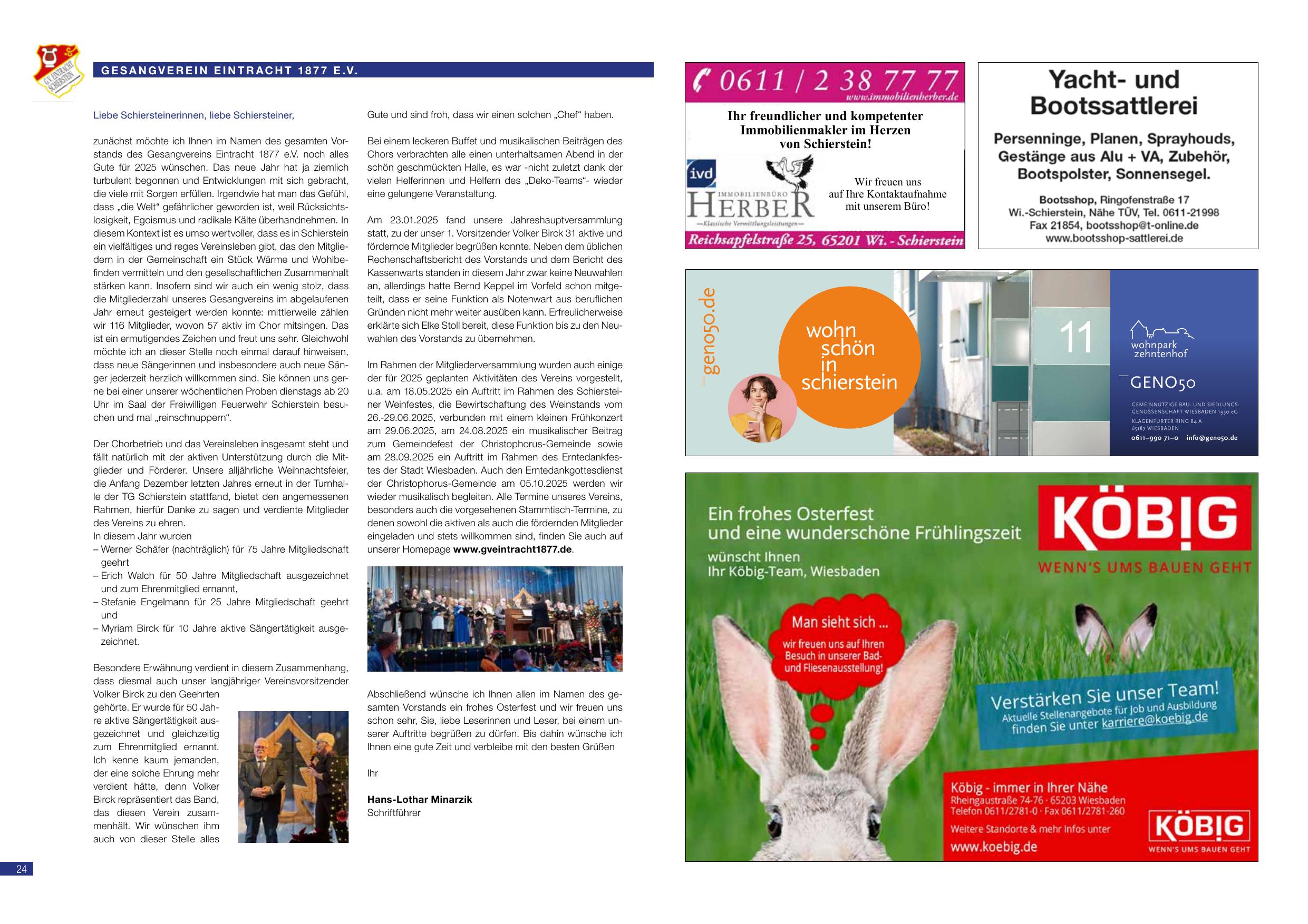 Der Chorleiter ist auch nach wie vor nicht müde, nach Schierstein die Verbindung zu halten und einen Neustart zu leiten. Wir sind ebenfalls sehr froh für das nächste Konzert und die Proben. Bitte werden Sie Mitglied bei uns — wir freuen uns!