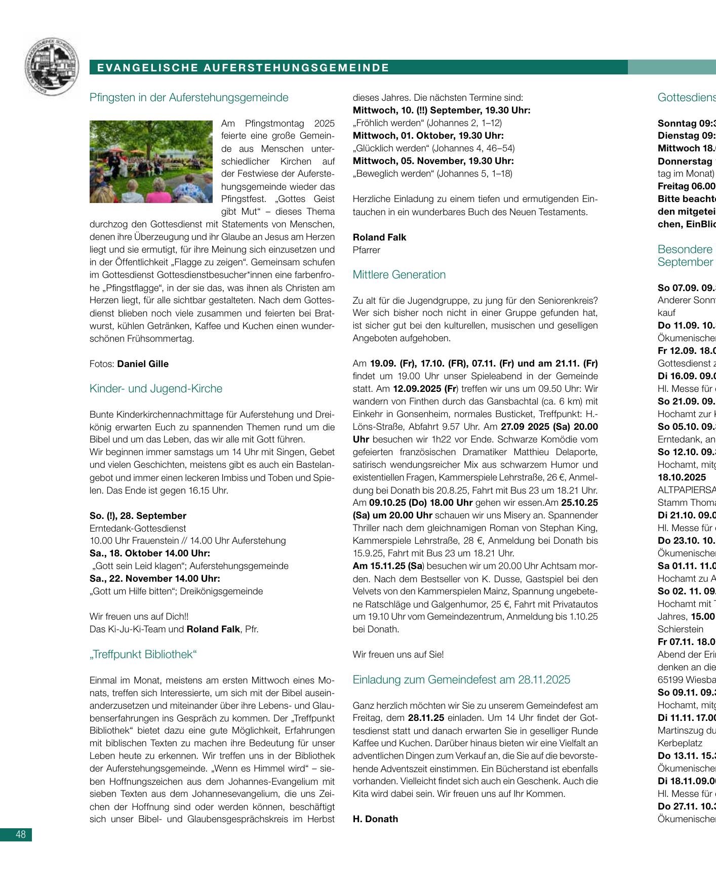 Besondere Gottesdienste und Veranstaltungen September bis November: