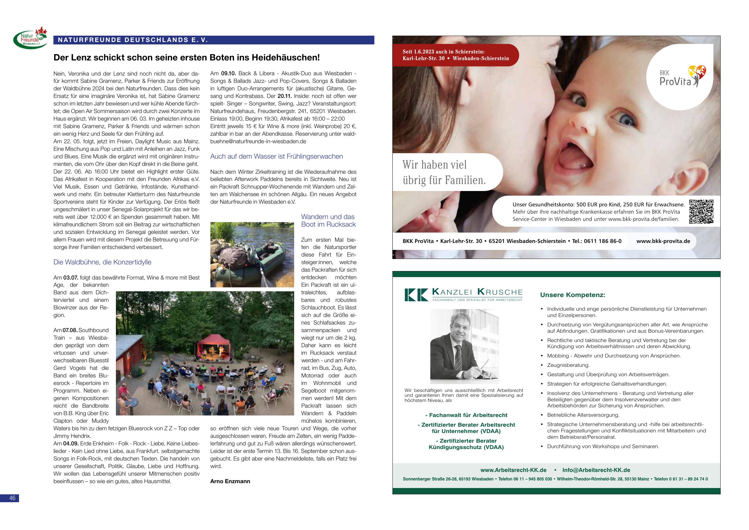 Der Lenz schickt schon seine ersten Boten ins Heidehäuschen! Nam, Veronika und der Lenz sind schon auf dem Weg. Die Heidehäusche 2024 bei den Naturfreunden. Vom 10. März beginnt die Saison. Am 05.04 – Black & Ukele / Akustik-Duo aus Wiesbaden – Songs & Ballads in Jazz, Folk und Blues. Am 13.04 – Gitarrenakustik zur Eröffnung. Am 22.05 – Konzert mit einem Gitarren-Duett in Schierstein. Am 25.05 (Pfingstsonntag) – Family Groove aus Menü mit Best of Rennex. Am 01.06 – Ehrfurcht beim öffentlichen Sommers. Am 08.06 – Sommerfestreunion. Die Waldbiome: Beste Informationsveranstaltung geben die Waldfreunde für Interessierten statt. Wandern und Buch im Rucksack: Unter Mit Mitglieder im Rücken machen wir Touren. Am 07.06 – Morgentrail aus Wiesbaden. Am 08.06 – Einfahrt Folk-Rock – Laibe; Kaute Lübbe. Am 04.09 – Einfahrt in Schierstein. Kontakt: Arno Enzmann.