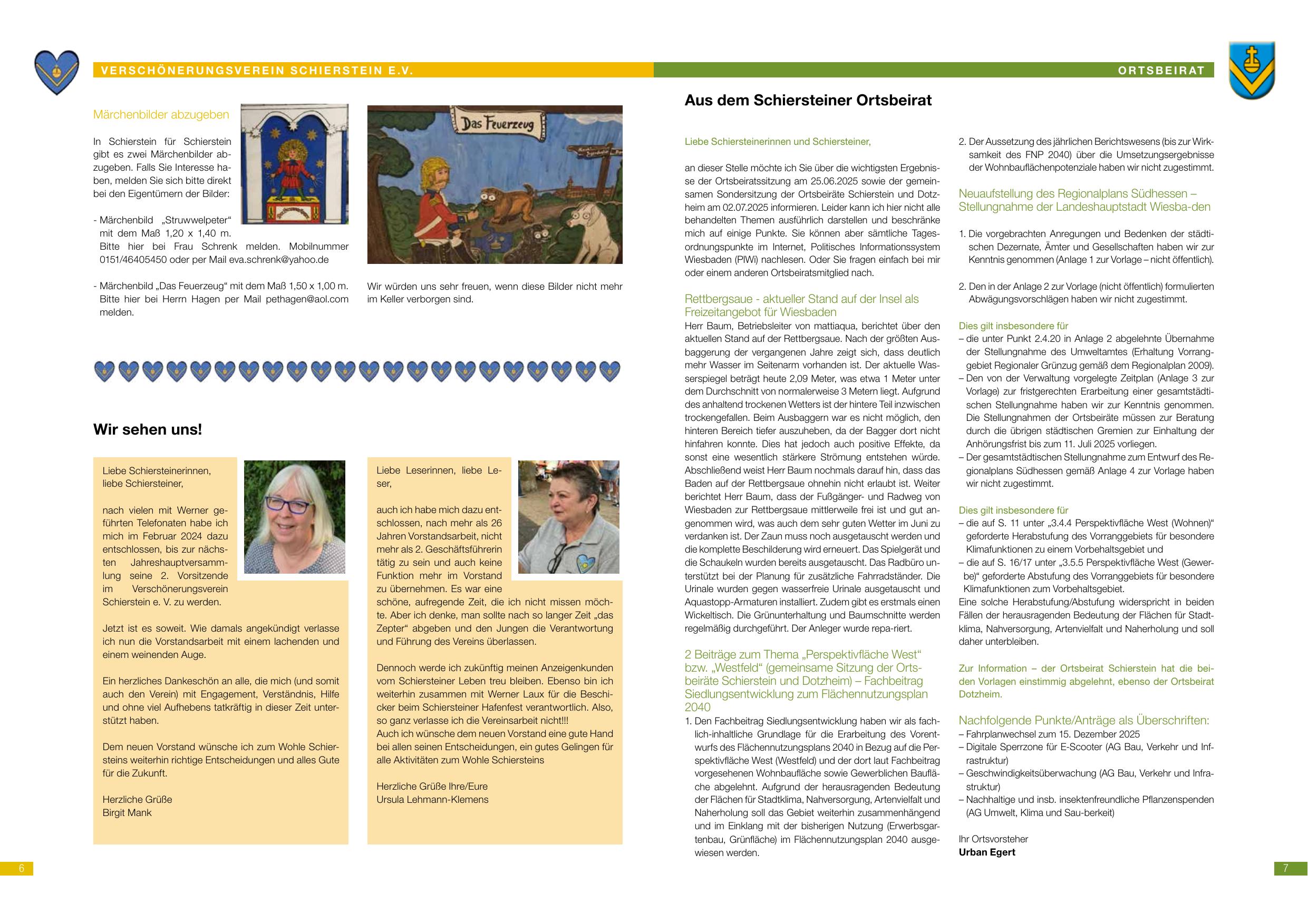 2 Beiträge zum Thema „Perspektive Wiesbaden“ und zur gemeinsamen Fachberichtung Schierstein und Dotzheim — Fachbericht: