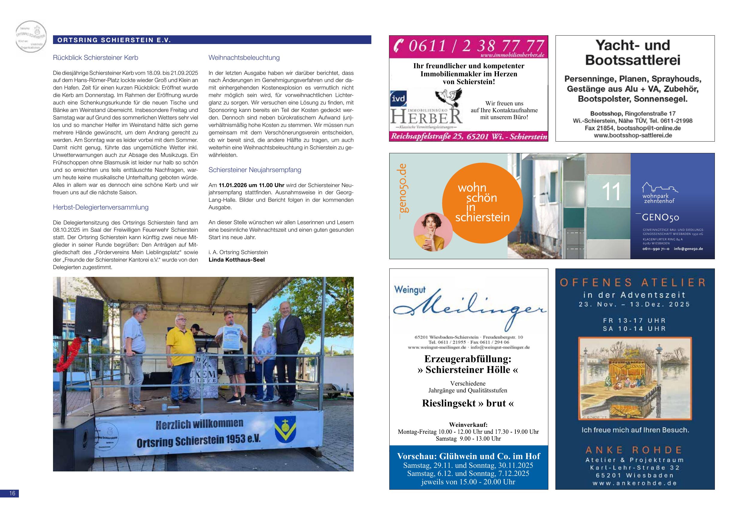 Am 11.01.2026 um 11:00 Uhr wird der Schiersteiner Neujahrsempfang stattfinden, Ausstellungshalle in der Georg-Lang-Halle. Die Gäste erhalten mit Bildern und Informationen aus dem Jahresbericht Zugang zu unserer nächsten Ausgabe.
