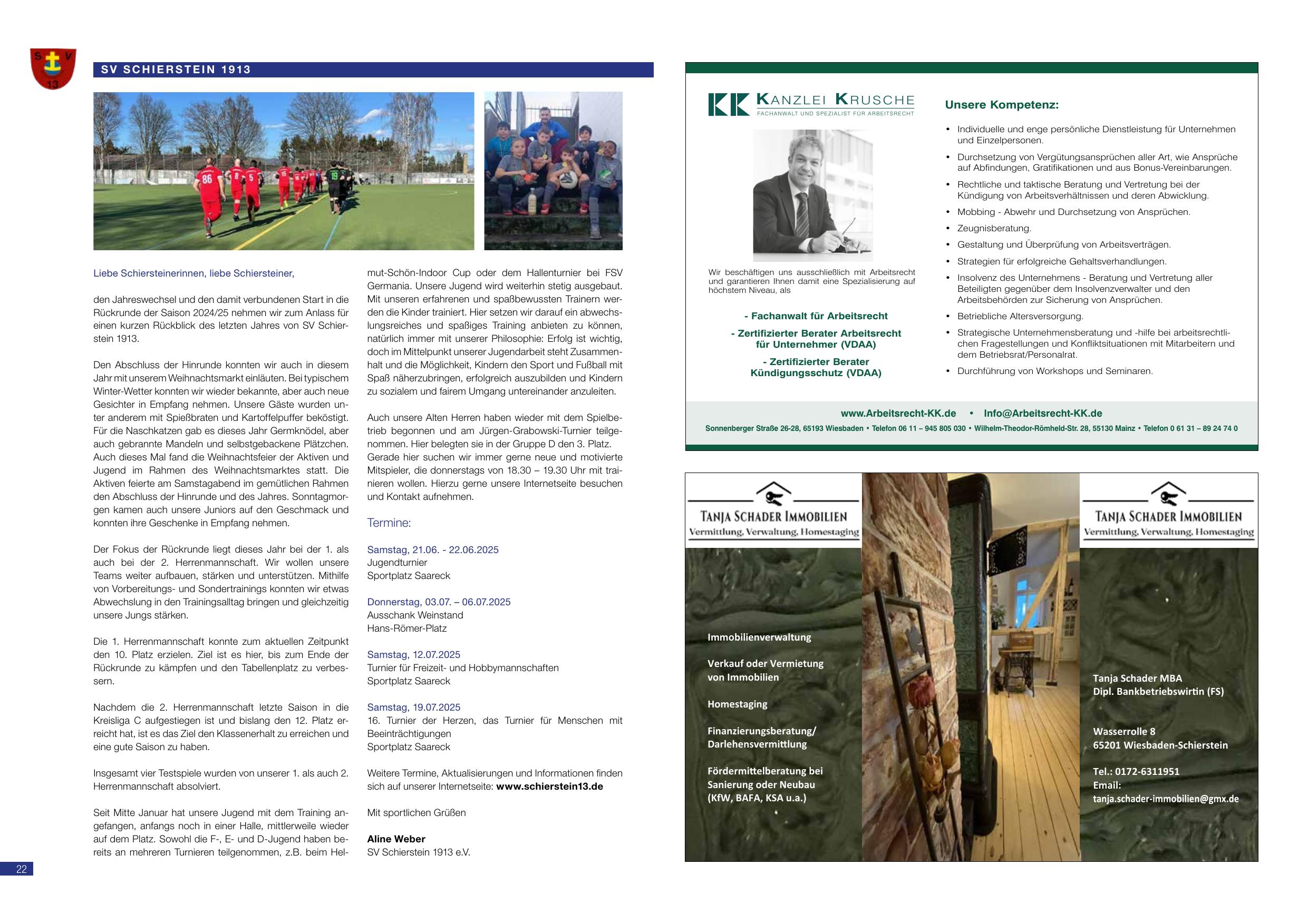 Weitere Aktuelle Informationen und Spielberichte finden sich auf unserer Homepage: www.svschierstein13.de
