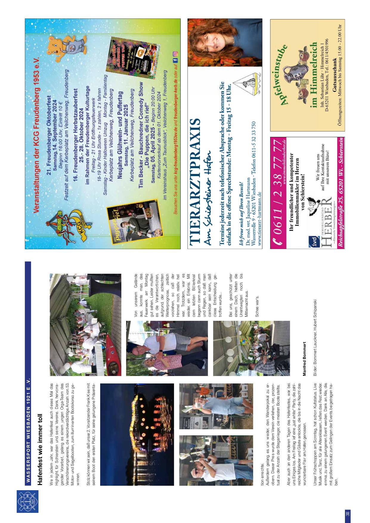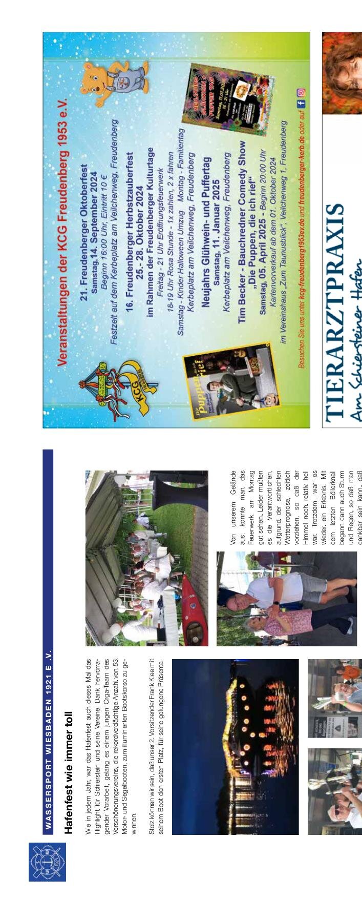 Hafenfest wie immer toll: Der Wassersport Wiesbaden 1921 e.V. berichtet über das Hafenfest 2024. Wie gewohnt haben wir uns am Wochenende des Hafenfests aufgemacht, um Schierstein in seiner schönsten Zeit zu erleben. Gut dabei war, dass wir auch dieses Jahr wieder eine tolle Besetzung der Crew zusammengebracht haben, mit frischen Segeln des Vereins. Daher konnten alle Passagiere und Gäste im Hafen an Bord willkommen heißen. Stetz kommen wir wieder am ersten Platz. Von der Steganlage des Vereins aus war der Ausblick auf die illuminierten Boote fantastisch, als diese in der Nacht zur Hauptattraktion wurden. Unser Vorstand Frank Schell wollte dabei sein und ließ sich auf ein Gespräch ein. Aber auch an den letzten Tagen des Hafenfests wurden immer wieder neue Höhepunkte erreicht, ordentlich gelungen, auch das Sommerfest blieb der Feier entsprechend. Unser Frühjahrspreis hat der Verein geschafft, zum ersten Platz anzubringen. Mafred Bommert.