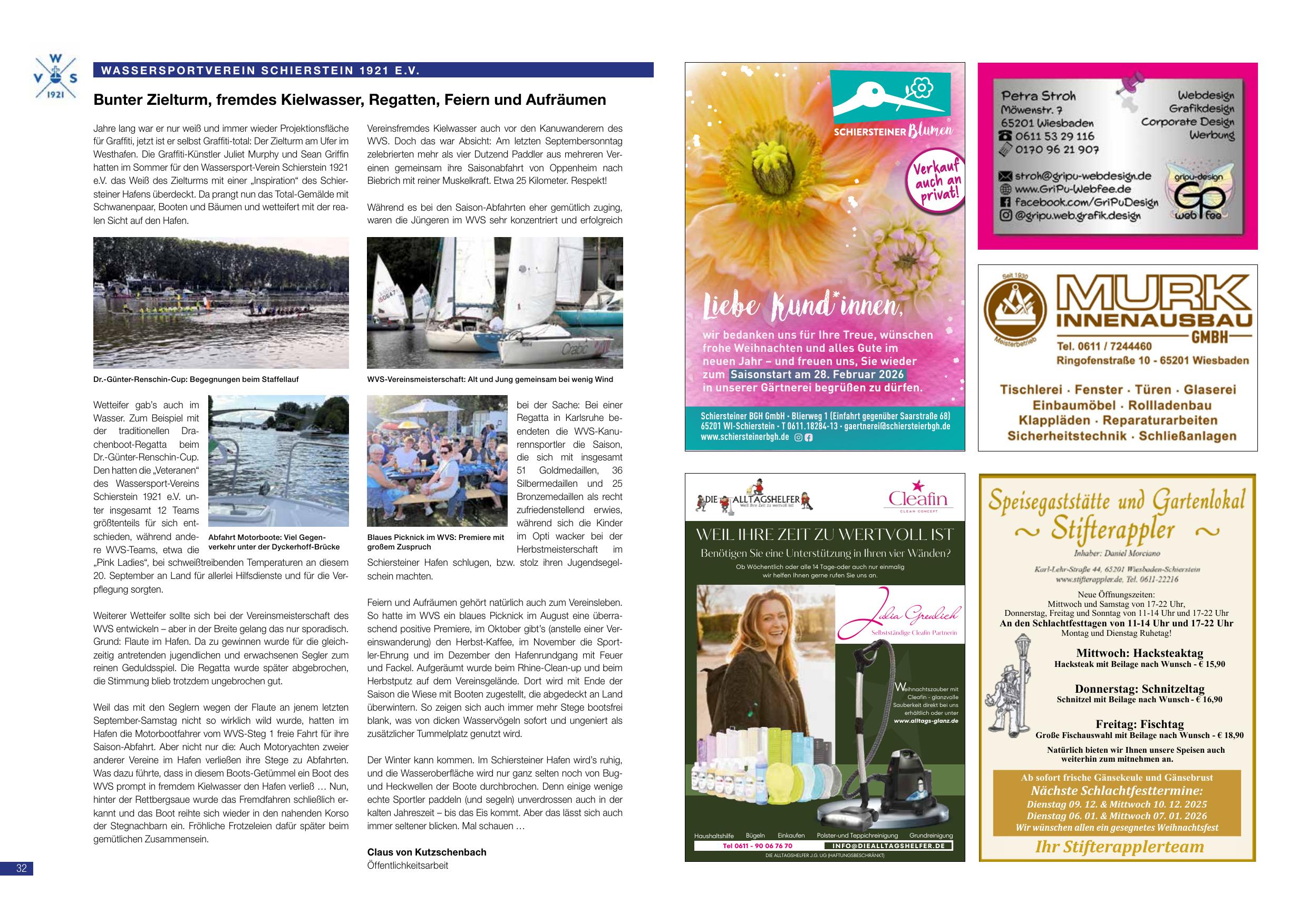 Weitere Wettbewerbe sich die Mitglieder des Vereinsgeisters das WSV als der sportliche Grundpfad: als ein Verein mit professioneller Führung – der Dr. Günter-Rennchen Club vom WSV-Wettbewerb und der Schiersteiner Rennchen Regatta. Die letzte Saison hatte auch im Oktober Regatten und Segel-Abschlüsse. Die Regatta-Abschlussfeier war am Schiersteiner Hafen beim stürmisch werdenden Wind.