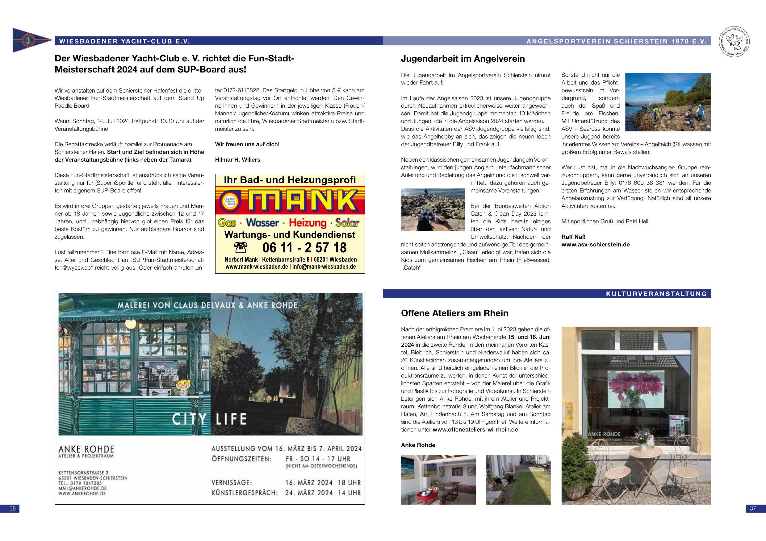 Der Wiesbadener Yacht-Club e.V. richtet die Fun-Stadt-Meisterschaft 2024 auf dem SUP-Board aus! Wir veranstalten auf dem Schiersteiner Hafenfest die Veranstaltung von Ort um ca. 3 € am Veranstaltungsort zu errechnen werden. Die Gewinnerin und Gewinner in der zwei gelöteten Klassen Frauen, Männer und Jugendliche erhalten einen Preis. Weitere Informationen und Anmeldung per E-Mail an: info@wiesbadener-yachtclub.de. Starttermin: Sonntag, 14. Juli 2024, Treffpunkt: 10:30 Uhr auf der Schiersteiner Hafenanlage Höhe der Veranstaltungsbühne (in der Nähe der Tamara). Lust teilzunehmen? Eine formlose E-Mail mit Name, Adresse und Alter (Kinder 12–18 sowie Jugendliche 12 und 17 Jahre) genügt. Das Startgeld 5 € am Veranstaltungsort. Preisgelder für den Gesamtsieger: Erster – 500 €; Zweiter – 250 €; Dritter und mehr je 100 €.